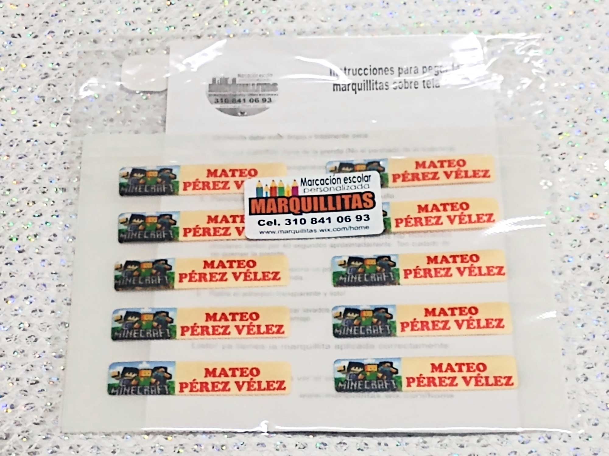 Marquillitas en material thermoresistente, para pegar o fijar con plancha, son 20 unidades, ideales para marcar todo tipo de uniformes (textiles) al igual que las prendas de vestir de tus hij@s. Fáciles de pegar con plancha, ofrecemos videos instructivos paso a paso.
